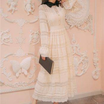 Women’s White Embroidery Split Dress with Tassel Sleeves