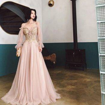 Women’s Tulle Off The Shoulder Prom Dresses with Puff Sleeves